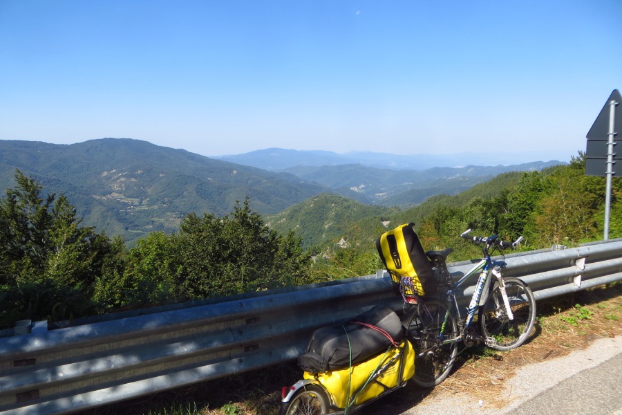 Eingetroffen in Ancona, aus Kroatien, nach einer sehr entspannten Überfahrt ging es Richtung Norden bis Rimini. Immer möglichst auf dem Radweg oder der Promenade an der Adriaküste entlang. Die Strände sind allerdings mit Liegestühlen gepflastert, einer neben dem anderen. Freier Zugang zum Strand ist da oftmals nicht möglich, nichts für mich, keine zehn Pferde bringen mich dort hin. Aber hier wollte ich einen Appenien (Bergkette im nördlichen Italien) Cross mit meinem MTB machen. Also alles überflüssige auf einen Zeltplatz abgestellt, (dieser war wegen Corona gerade mal zu ca. 20% belegt und ohne Deutsche, das am 03. August 2020) mit minimal Gepäck los. Die 7 Tage MTB Tour erwies sich allerdings als Reinfall, so brach ich sie ab.